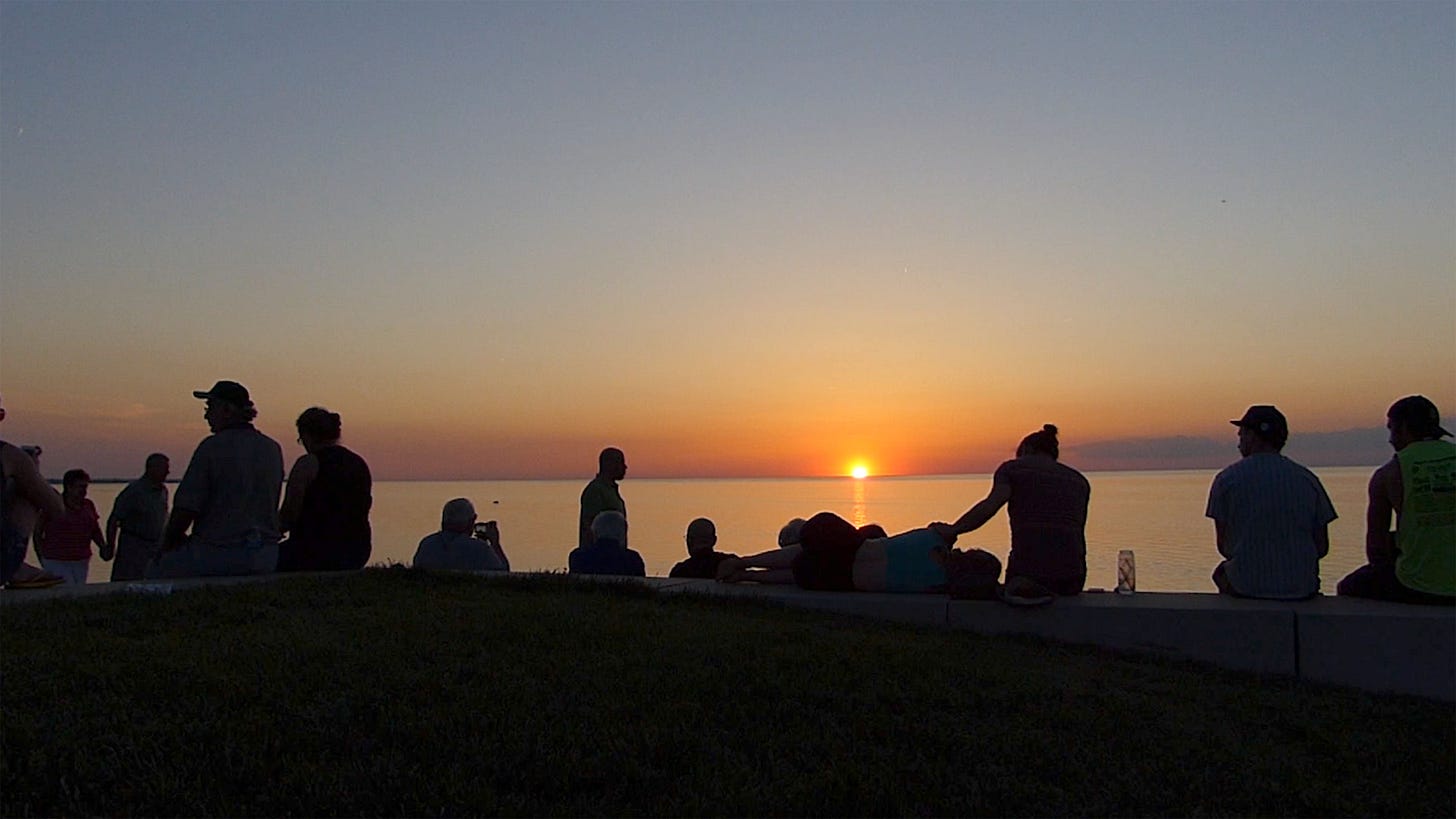 I was standing on the Solstice Steps in Lakewood, Ohio, watching the sun bleed orange across Lake Erie. It was a Tuesday evening in June. A hundred strangers scattered across five tiers of concrete—sitting, lying down, kids running between adults, teenagers trying to capture something that doesn’t really photograph.