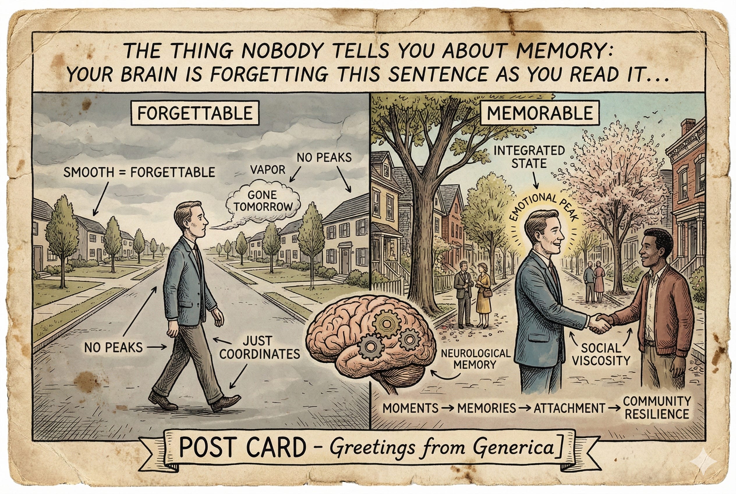 Because every community is built on memory. Not metaphorical memory. Actual, neurological, encoded-in-your-brain memory. The accumulation of experiences that tells you, “this place is mine.” The sensory hooks that trigger not brand recognition but belonging.